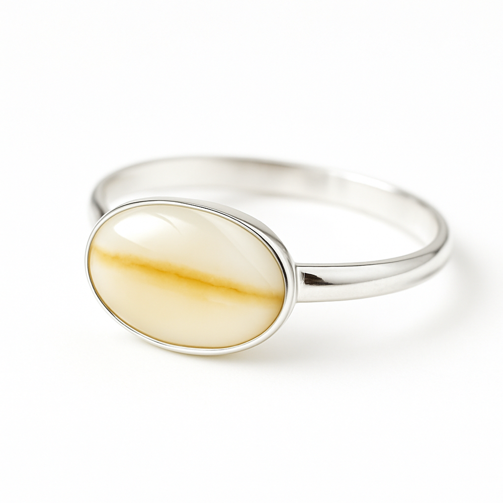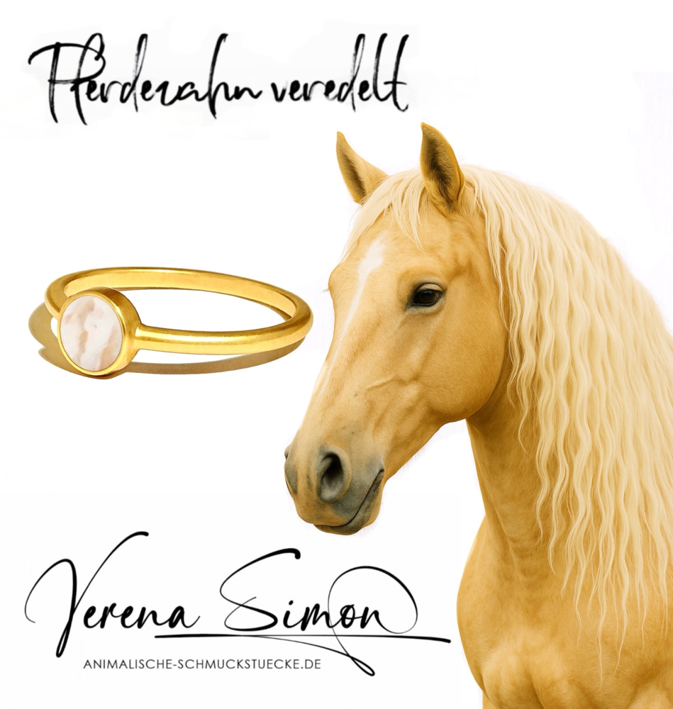 Ring aus 925ger Silber mit Zahnfragmenten im Inneren (Kind,Hund,Pferd) veredelt