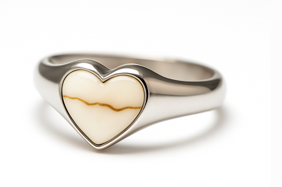 Herzring aus Edelstahl veredelt mit Zahn,Haar oder Asche (Art.nr.1065)