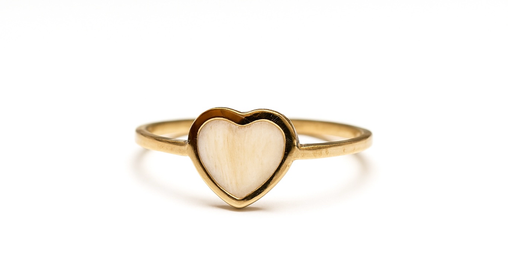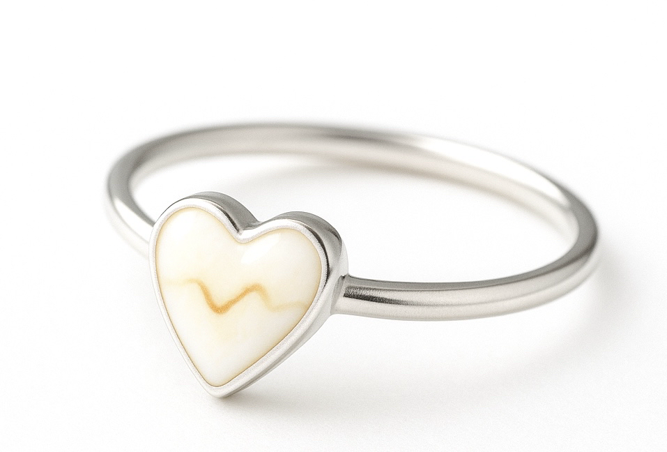 zarter Herzring aus Edelstahl veredelt mit Zahn,Haar oder Asche (Art.nr.1074)