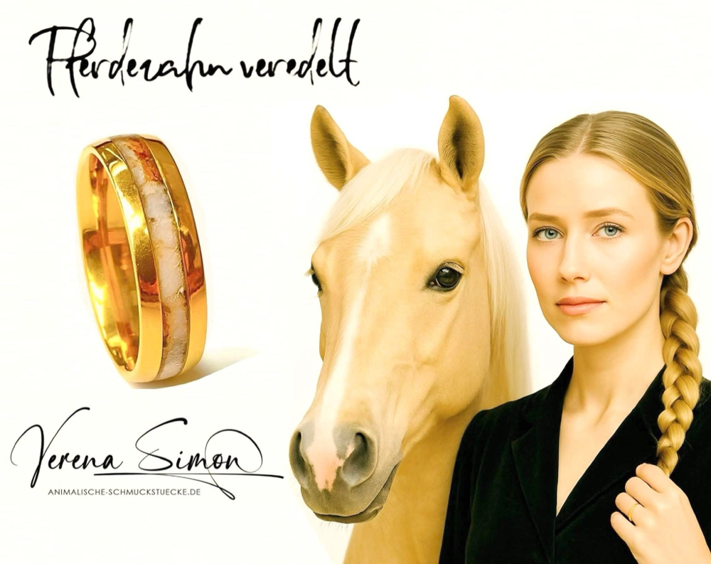 Ring aus Edelstahl mit Zahnfragmenten im Inneren (Kind,Hund,Pferd) veredelt